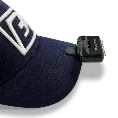 클립형 집게 방식으로 모자에 고정하는 캡 라이트. UV라이트, 백열광 라이트, 모기퇴치등 3가지 기능. USB 충전식, 생활방수 기능.