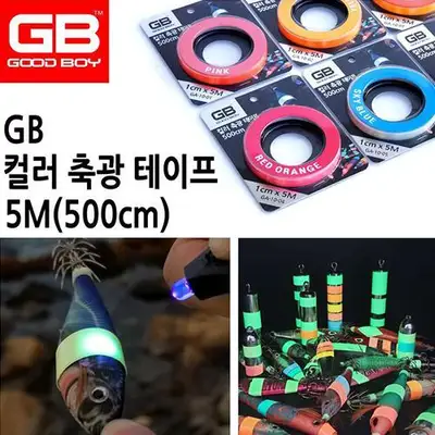 6가지 컬러 축광 야광 테이프. 에기(Egi) 루어 및 하드 루어, 메탈 루어, 싱커 등에 접착하여 집어(集魚) 및 야간 식별 효과를 극대화시키는 상시 축광형 테이프. 다양한 컬러 출시로 현장 루어와 유사한 컬러의 축광 테이프를 사용함으로써 집어 및 공격성을 향상시키는 시너지 효과를 기대. (규격 : 1cm x 5M)