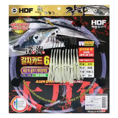 심해 갈치 전용 카드형 루어. 축광 역방향 꼴뚜기 케미 장착형으로 어두운 심해에서도 강력한 유인 효과를 발휘합니다.