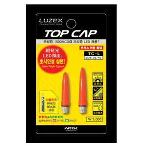루젝스 격투 막대찌 전제품과 사용 가능한 전자 케미 톱캡. 고휘도 LED 채용, 초발광 프리즘 LED, 실리콘 링으로 완벽한 방수 실현. BR425/BR435 전지 사용. 30/40규격 케미홀더에 어디든 사용 가능한 두가지 사이즈.