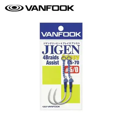 #5/0원통형 샤프트, 지겐 그리피 후크(JH-40), 탄화불소 코어 PE 코드, 어시스트 링 [A-PR], 파란색 수축 튜브 [B-ST]