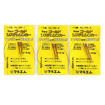 마루엠 뉴 골드시스템싱커 no.168. 2눈금부터 스토퍼가 있어 편리한 사용이 가능한 중층낚시용 싱커.