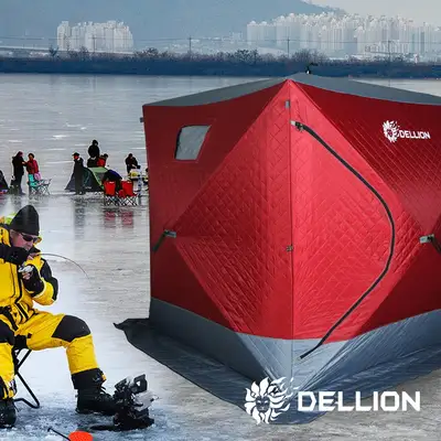 델리온 아이스 큐브 텐트 Ver.2는 콜팅 재질로 추운 겨울에도 걱정 없이 사용할 수 있는 4~5인용 빙상낚시 전용 텐트입니다. 텐트와 폴대가 일체형으로 손쉽게 설치와 해체가 가능하며, 상단부 통풍구와 대형 출입구가 있어 편리합니다. 보관 및 이동이 편리한 백팩 타입 가방이 포함되어 있습니다.