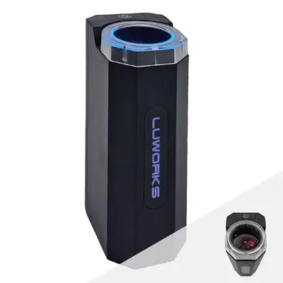 깊고 넓어진 홀더 사이즈로 긴 무늬오징어와 삼봉에기 등 약 13cm 이내의 에기 및 메탈 루어도 한번에 발광이 가능한 휴대용 축광기. 원터치 푸시버튼 방식과 탈부착 파츠, 반구형 배수홀을 적용한 모델.
