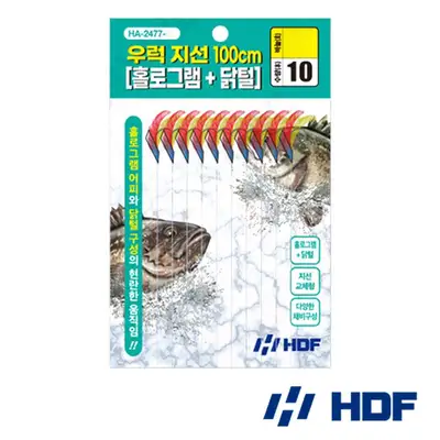 해동조구사의 우럭지선으로 홀로그램과 닭털이 장식된 교체형 지선입니다.