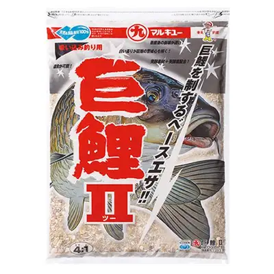 대물 잉어 낚시용 떡밥. 빠르게 흩어져 포인트를 형성하며, 높은 비중으로 자미에 강하고 흐름에도 지지 않습니다. 착지하면 하얀 안개가 퍼져 잉어의 경계심을 풀고 '키라라'가 시각적 어필합니다. 동물성 및 식물성 소재를 균형 있게 배합하여 발효 소재의 맛 성분이 대물에게 강력하게 어필합니다.