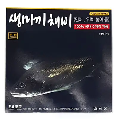국내 수제 생미끼 채비. 20호 투명 형광 오징이 사용으로 집어력 향상, 뱅글뱅글 스프링(특허품)으로 꼬임 현상 방지, 미끼 원활한 회전으로 입질 효과 증대. 전장 120cm.