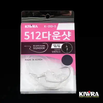 512 다운샷 전용 후크. CATS CLAW 포인트 디자인으로 예리한 찔림 성능. ONE WAY 구조로 바늘 빠짐 방지. 5호 라인에 최적화된 단차 70cm.
