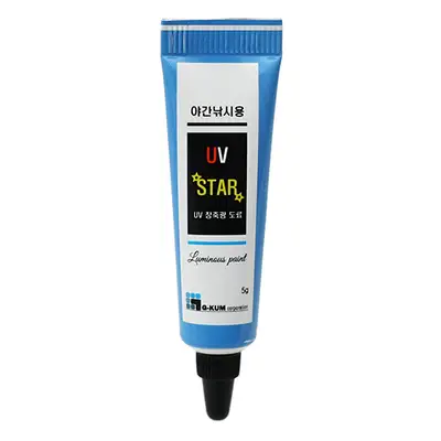 UV 스타는 압도적인 광도와 빠른 건조성, 높은 스크래치 저항성을 가진 축광 도료입니다. 튜브형으로 사용이 간편하며, 플라스틱/철/유리/수용성 등 다양한 소재에 부착 가능합니다.