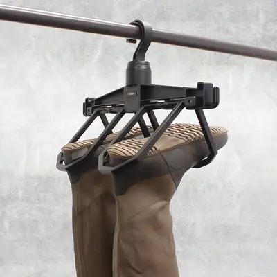 - 세탁한 방수 바지, 비치 슈즈, 부츠 및 기타 크기의 신발을 거꾸로 건조할 수 있는 매우 견고한 옷걸이입니다. -양쪽 끝에 작은 물건을 걸 수 있는 멀티 훅 포함. ● 360° 회전이 90° 증가하므로 방향 걱정 없이 사용할 수 있습니다. ① 폭 : 120mm 까지 ② 두께 : 110mm 까지