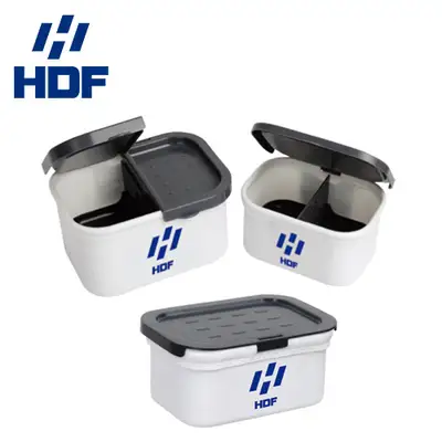 기능성·보관성·취급성이 편리한 EVA소재, 기능성 미끼통. 내부 물빠짐용 메쉬 받침대 구성(탈 · 부착형). 야간 미끼 식별이 용이한 3mm 케미 꽂이 구성(중간 칸막이).