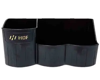 블랙 컬러의 컵홀더트레이로 220×70×100mm 크기. 멀티 태클 아이스박스 9L 및 타사 태클박스 호환 가능. 음료수 병 장착용 홀더와 에기 등 소품 보관용 트레이 구조.
