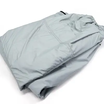 따뜻한 발수 방한 스커트. 外側には両方から手を入れられる大きなポケット付き。あぐらをかいてもつっぱらず、ゆとりがあります。スカートの裾はダブルファスナーになっています。スカートの内側にも便利なポケット付き!