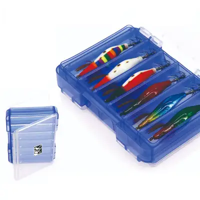 컴팩트 사이즈 양면 개폐형 소형 태클박스. 양면 수납형 에기케이스(12개 수납형)로 소형 미노우 및 1.8호 이하 에기 수납에 용이하며 내부 배수 구멍으로 세척이 용이함.