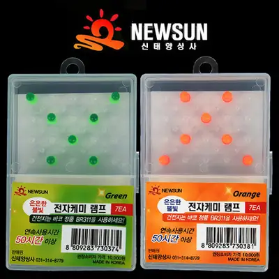 막대형 전자케미 램프 덕용. 온은한 불빛의 명품 전자케미 램프. LED램프와 리튬전지(BR311)로 구성. 연속사용시간 50시간 이상. 기본구성: 케이스 1개 + 램프 7개 (배터리 미포함). 높이 9mm, 반지름 4mm. 무게 0.26g. 붕어, 향어, 잉어 올림낚시/바닥낚시/찌낚시용.