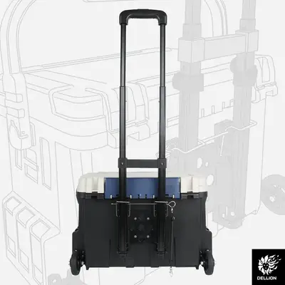 BM-9000 태클박스 호환 캐리어. 3단 높이조절 가능한 원터치 핸들, 우레탄 소재 휠, 다양한 태클박스 호환 가능. 이동성을 위해 가볍고 견고하게 제작.