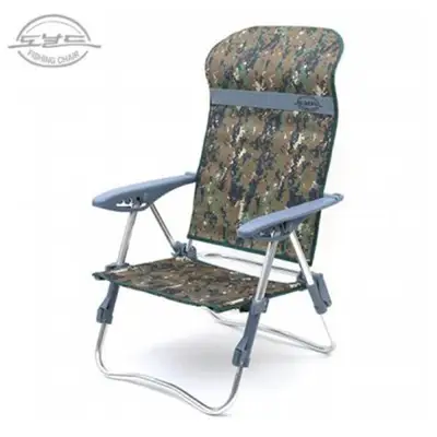 단계별 등받이 조절과 앞/뒷다리 높이 조절 낚시의자. 5단계 등받이 조절, 앞뒤다리 높이 조절, 거치대 홀더, 머리베개, 다용도 보조가방 등의 기능을 갖춘 낚시의자입니다.