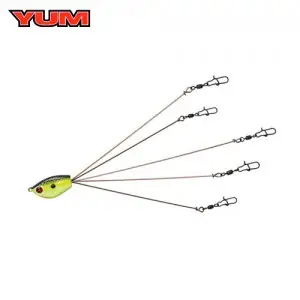 YUMbrella 5-Wire Rig는 가장 진보되고 내구성이 뛰어난 알라바마 리그 중 하나입니다. 반복적으로 열처리된 5개의 7인치 슈퍼 와이어를 사용하여 포식자의 거친 물기와 공격을 견딜 수 있도록 우수한 강도와 유연성을 가지고 있습니다. 45파운드 테스트 스냅과 75파운드 테스트 회전이 있어 리그와 루어 사이의 견고한 연결을 보장합니다. 이 7인치 멀티 스위밍 5 와이어는 베이트 스쿨 테크놀로지 현상의 일부입니다. 5개의 와이어 채용으로 사실적으로 베이트 피쉬 떼를 흉내냅니다.