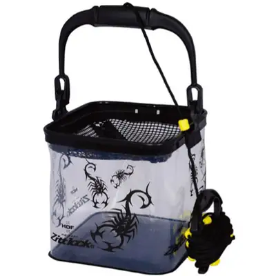 투명(누드) 타입의 소형어 살림통 검용 두레박. 상부막개혁형그물구조로, 물고기살림통으로 병행사용하는모델. 구성품: 누드그룹두레박+8m로프·자세셋트.