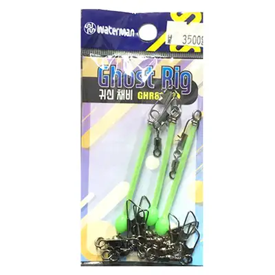 주꾸미낚시에 최적화된 구조로 품명마저 쥐도 새도 십지어 "귀신"도 모르게 주꾸미를 싹쓸이 할 집어력의 귀신 채비입니다. 채비운용 방법은 좌측 하단의 그림과 같이, 와이어축 하단에 T형 도래를 중심으로 달리 양옆 스냅에 예기 종류(자사 WEG)의 투어를 달아주고, 가운데 스냅에는 저중심 웨이트 구조를 이를 수 있도록 봉돌 12호-45g/13호-52.5g/14호-60g 등 선택적으로 싹커(자사HXK)를 달아 부하를 줍니다. 기존 허다한 주꾸미 채비와 차별화된 중심 와이어축의 길이는 다년간 수차례 필드 테스트를 거쳐 얻어낸 결과로 야광튜브와 야광비드도 끼워져 있어 축광 성능을 발휘하고, 와이어축과 야광튜브의 길이차이로 노출된 강선 구간은 양 사이드 스냅에 체결된 예기로 하여금 수중에서 플로팅하며 더욱 생동감 넘치고 자연스런 액션 연출이 가능하도록 해 줍니다. 안정된 주꾸미 채비용 프레임 구조는 본연의 모양을 유지하면서도 체결된 각 베이트의 특성을 잘 살려내는데 일조하여, 가성비 대비 폭발적인 집어력은 가히 가공할 만합니다.