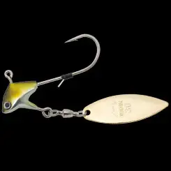 스핀 헤드라고 불리는 마이너 카테고리의 리그를 진화시킨 슈퍼 클래스 스위밍 루어 '프로 리그 스핀'. 'V블레이드'는 플러싱과 물줄기로 소프트 베이트에 매력을 더하며, 스핀형 소프트 베이트나 쉐드테일형 소프트 베이트를 세팅하면 리트리브는 물론 폴링에서도 스위밍 액션을 발생시킵니다. 10g 모델은 어시스트 훅 전용 아이를 갖추고 있으며, 7g 윌로우 모델이 추가 라인업되었습니다.