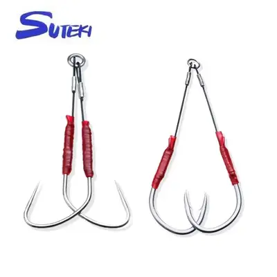 갈치 지깅낚시용 경량 강성 어시스트 더블 바늘. 갈치의 날카로운 이빨에 대응하는 어시스트 라인. 지그의 움직임을 최대한 활용하는 초경량 설계. 쇼트, 롱, 단차를 선택하여 원하는 채비 셋팅 가능.
