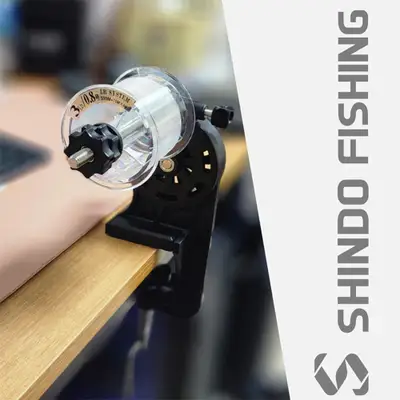 라인 와인더 리사이클러. 낚시줄을 감기 쉽게 도와주는 도구. 평평한 책상에 고정 나사로 고정하여 사용.