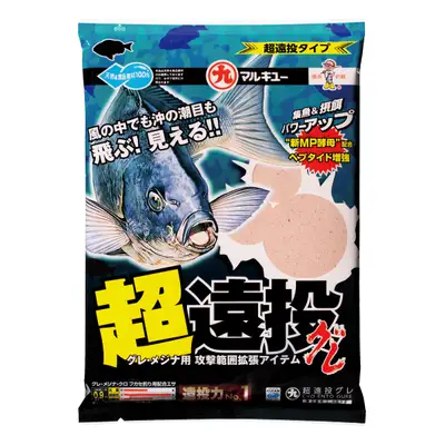 마루큐 초원투구레 벵에돔 집어제. 원투 전용으로 개발된 제품으로 바람이 강한 환경에서도 먼 거리 투척이 가능하며, 높은 시인성과 확산성으로 포인트 파악이 용이함.