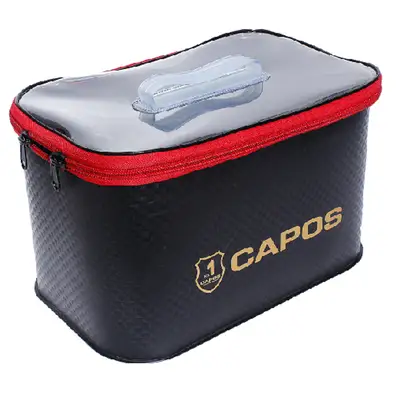 바다/민물 겸용으로 사용할 수 있는 카포스 멀티백. 수납이나 운반뿐만 아니라 가정에서 보관용 케이스로 활용 가능. 장갑·수건·태클박스·릴 기타 등등 내용물 확인과 수납하는 편리한 가방. 낚시용도 뿐만 아니라 야외 레저활동 시 다용도 보조 백으로 활용할 수 있도록 가방의 형태 유지를 위해 가법고 모양이 흐트러지지않는 1.5mm EVA와 PVC 소재를 사용 제작. 고강도의 잡기 쉬운 핸들을 잇면에 적용하여 이동 시 편리함을 주며, 여닐기 편리하도록 대형 지피를 적용하였고, 클리어 소재의 뚜껑 사용하여 내용을 확인이 용이. 장화 및 단화를 냄새·오염 없이 깨끗하게 보관이 가능한 케이스로 활용 가능.