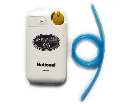 선상낚시, 갯바위낚시, 방파제낚시용 에어포프 펌프. 독자적인 롤링범퍼 구조로 어떠한 악조건도 이겨내는 내구성. 사이즈 80×40×150mm, 생활방수기능. 연속 약 25시간(강) 약 75시간(약) 사용 가능.