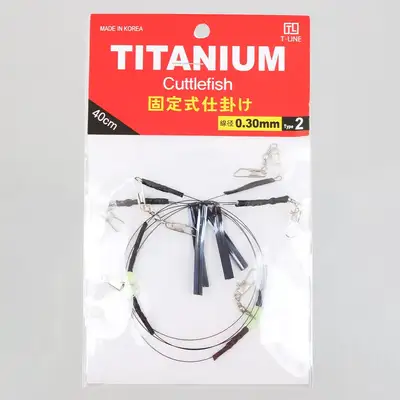 티라인 티탄 고정 갑오징어는 40cm 길이의 고정식 갑오징어 채비입니다. 선경 0.30mm 타입 2로 제작되어 안정적인 사용이 가능합니다.