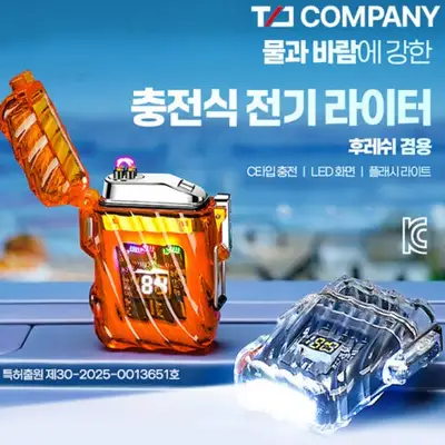 3단 플래시 라이트 기능을 갖춘 충전식 전기 라이터입니다. CEA입 케이블로 간편한 충전이 가능하며 완충까지 30분이 소요됩니다. LED 화면으로 배터리 잔량을 확인할 수 있고 뚜껑 열림 방지 이중 잠금 장치가 적용되었습니다.