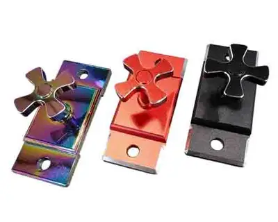 레인보우 색상의 알루미늄 경첩입니다. 경첩이 빠지는 것을 방지하며, 트러짐 없이 잡아주는 기능이 있습니다.