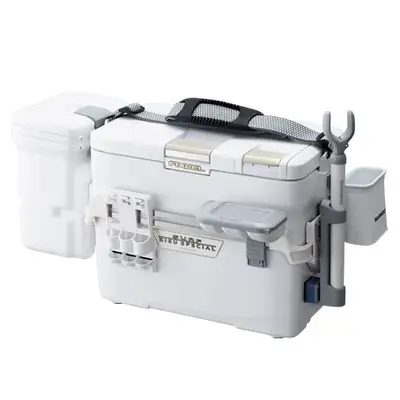 서프 키수 스페셜 120. 푸어 화이트 색상. 12L 용량의 원투 낚시용 쿨러. 원액션 락톱 레버, 물고기 넣어 입, 항균 플라스틱 사양, 내부 트레이 첨부, 하이그립 러버 다리 등의 기능.
