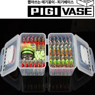 에기 수납용 태클박스. 2cm 높이 증가로 더 큰 에기 수납 가능. 피기-존(PIGI-Zone) 7개 포함. 54개 에기 수납 가능한 컴팩트 버전.