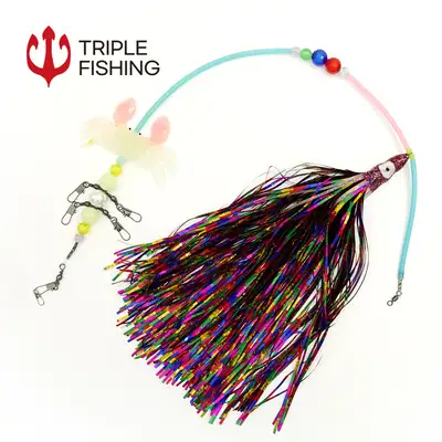 대왕문어 맞춤채비로 야광꼴뚜기&크랩 구성. 버림봉돌채비 / 색동스커트 적용.