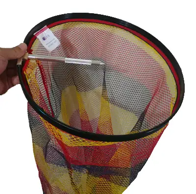 코팅 중층살림망. 강력 합사 그물망에 칼라 코팅을 하여 비린내가 적고 접철식 거치대가 장착되어 사용과 보관이 편리합니다. 입구의 크기를 40cm으로 하여 뜰채를 넣은 상태에서 고기를 투입하기 편리하며 접은 크기가 적절하여 보관과 이동이 편리합니다.