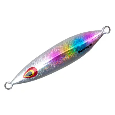 전면에 블루, 골드, 핑크, 실버의 다채로운 색상이 골고루 홀로그램과 함께 도포되어 있습니다. 홀로그램 또한 상당히 화려합니다. 앞뒤가 다른 메탈지그입니다. 뒷면은 강력한 야광 띠가 3번 둘러 있습니다. 축광 기능으로 깊은 수심에서 다른 메탈보다 눈에 띄일 가능성을 높입니다. 후면은 전체적으로 실버 홀로그램입니다.