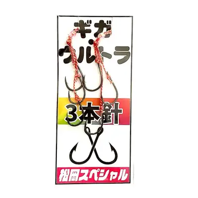 기가 울트라전용 3본 묶음바늘. 바늘이 3개 달린 3본 묶음바늘로 마츠오카스페셜 기가시리즈, 무한시리즈에 사용합니다. 일격으로 파악하는, 궁극의 관통 성능을 추구한 타이라바용 오리지날 훅을 사용. フッ素加工, MADE IN JAPAN.