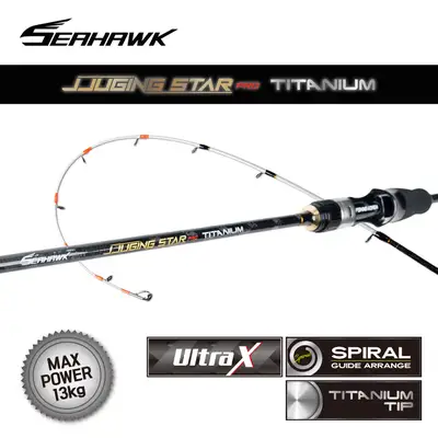 씨호크 주킹스타 프로 티타늄 스파이럴가이드 주킹스타 프로의 티타늄 팁 업그레이드 버전. 40톤 고탄성 카본과 ULTRA-X 보강으로 강도 향상과 뒤틀림을 잡아주는 안정된 블랭크. 티타늄 팁으로 부러지지 않는 초리와 탄력적인 힘새, 미세한 입절 파악에도 최적화 되었으며, 장시간 낚시에도 부담이 없는 무게감과 9:1~8:2 힘새 비율로 주꾸미 진입에 최적화된 액션. 내부식성에 강한 SEA GUIDE 社 SS316 가이트 프레임, 높은 강도와 내식성을 지닌 지르코니아 가이트링 채용.