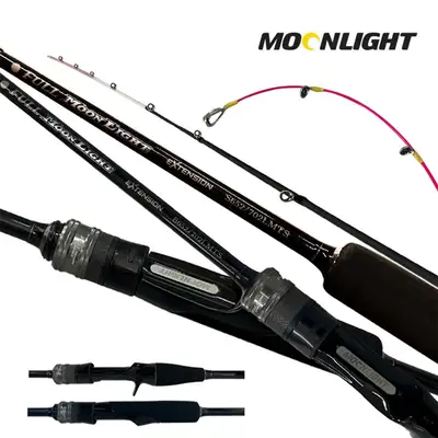 파워풀하며 생동감 넘치는 문라이트 익스텐션 베이트 로드. 초릿대가 티탄팁으로 된 베이트 로드 작은 쭈구미와 갑오징어 입질 파악에 탁월! 다운샷/타이라바/쭈꾸미갑오징어지깅낚시에적합! 연장대를 사용한 7ft 길이로 한치/텐빈/타이라바/대구라바 돌돔털털이 등 선상낚시가 가능.