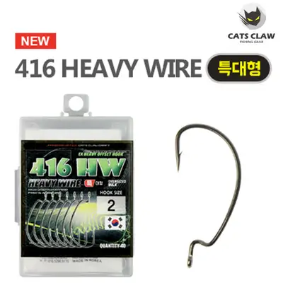 파워 피싱을 위한 헤비와이어의 오프셋 훅. 기존 홈와이어의 굸기보다 3단계 UP된 와이어를 채택. PE라인에 의한 헤비 텍사스 리깅 및 파워 피싱을 초월한 스타일에 적합하도록 설계된 최상의 홈. 인장력과 비틀림 강도를 자랑하는 416HW 훅.