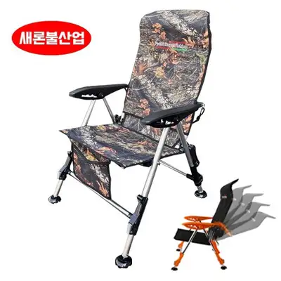 가벼우면서도 인체 공학적 설계된 낚시의자. 5단계 등받이 각도 조절과 원터치 다리 높낮이 조절 기능이 있습니다.