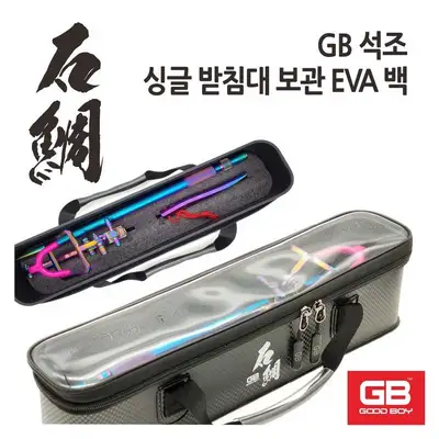 돌돔낚시용 싱글 받침대를 완벽하게 수납할 수 있는 EVA 전용 백(Bag). [거치 헤드 + 메인 타격 봉 + 고정용 하렌] 을 동시에 일괄 수납하는 타입. 최대 돌돔 받침대 2세트 보관 가능. 내부 내용물 확인이 손쉬운 투명 EVA 덮개 채용. 이동에 편리한 뚜껑 손잡이 구성.