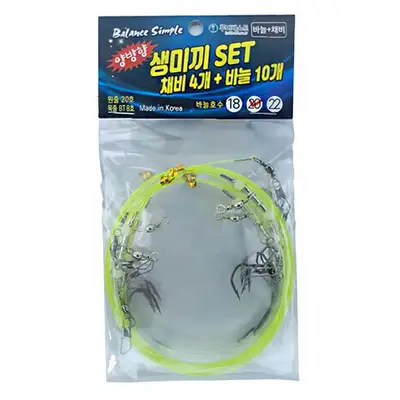 18호 바늘 사용 생미끼 채비. 형광라인 적용으로 가시성 증가. 4개 세트.