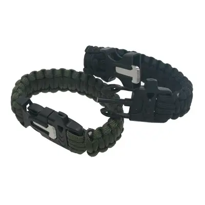카키 컬러의 서바이벌 브레이슬릿입니다. 파라코드 3M, 비상용 휘슬, 파이어 스타터로 구성되어 있습니다.