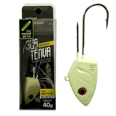 텐야 하단 틈에 케미라이트 장착이 가능한 발광하는 서브텐야. 갈치를 유혹하는 레드아이를 가진 헤드와 축광력으로 강력하게 어필이 가능하며, 강하고 날카로운 싱글훅으로 강력한 훅킹을 자랑합니다.