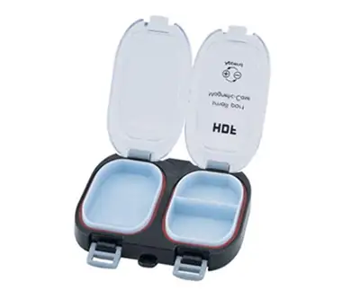 목걸이용 자석 소품 케이스. 더블 3칸 구조로 소품 수납에 용이. 자석 클로저로 편리한 개폐.