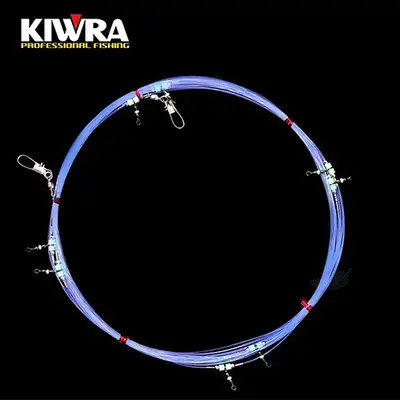 UV+케이무라 야광라인 갈치기둥줄. UV채비는 자외선에 노출이 안 되었을 경우 투명한 라인으로 있지만 자외선에 노출되었을 경우 보라빛을 띠고 있습니다. 자외선은 수중속에서도 노출이 되기 때문에 채비가 입수시 보라빛으로 되어 갈치에게 강력한 어필이 가능합니다. 삶은 경심 사용으로 소프트해서 라인이 꼬임이 적고 라인의 직진성과 파마현상 ZERO. 축광은 어느정도 시간이 지나면 빛이 없어지지만 케이무라는 축광이 아니라 노출로서 지속시간을 굳이 따질 필요가 없습니다.