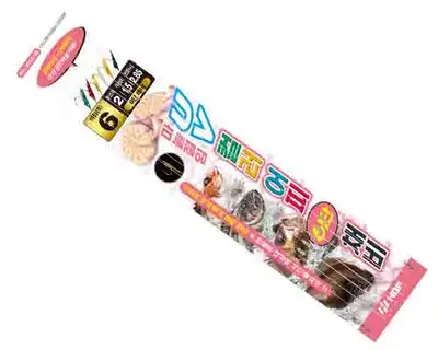 천연어피를 마늘에 절여 대상어의 호기심을 강하게 자극하는 6단 채비. UV 발광 처리와 틴셀을 적용하여 최상의 집어 효과를 발휘하며, 견고한 아지 평탄 바늘로 혹킹률이 높고 바늘 털림 가능성 최소화.